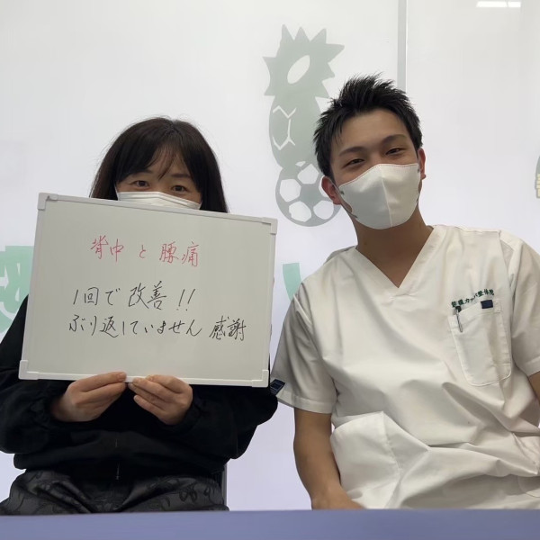 「背中、腰の痛みが1回の施術でも痛みがなくなりました!ぶり返していません!」